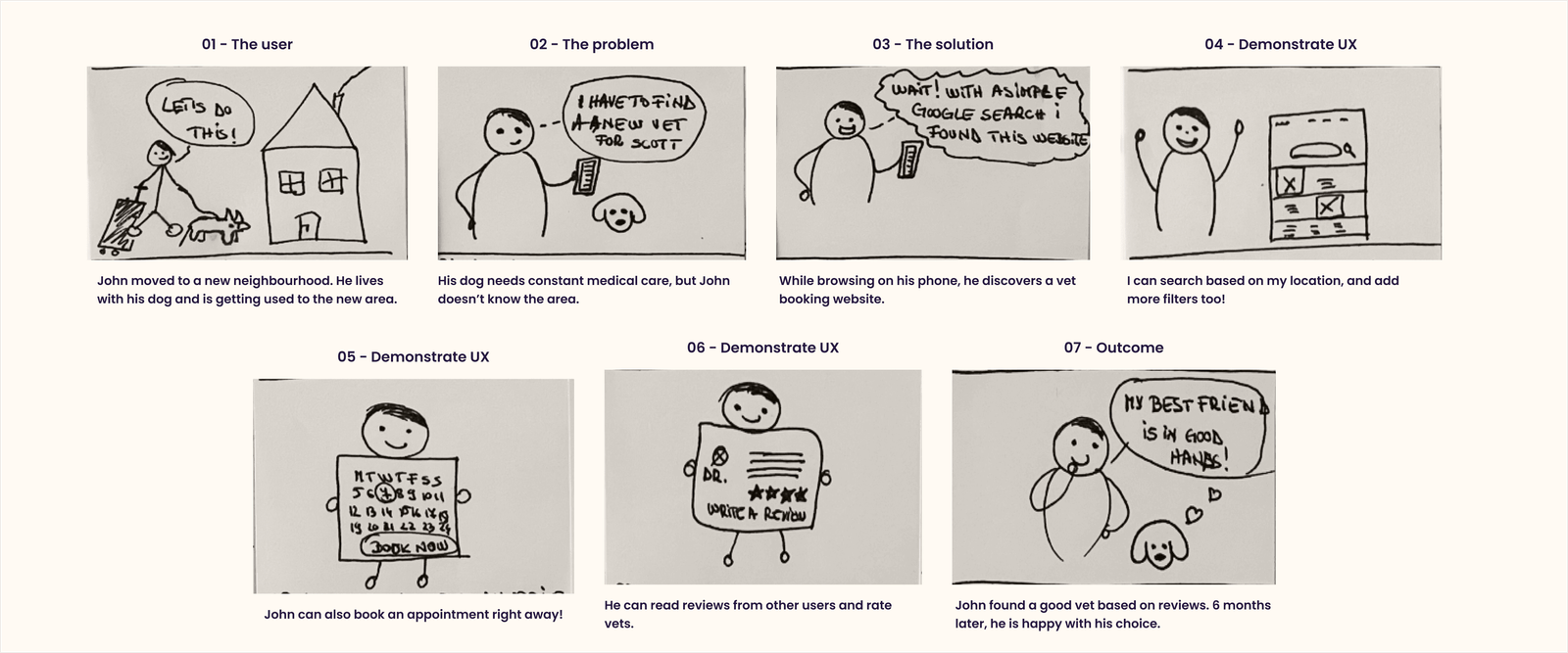The next step was finding images that suited the website’s topic, values and overall vibe. I wanted the platform to be a friendly, joyful, and helpful place for pet owners, so it was important to find imagery that would reflect these feelings. I opted for colourful illustrations which brought the design to another level.